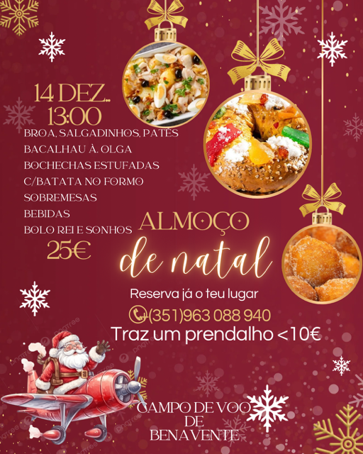 O Almoço de Natal da Aerodreams realiza-se no dia 14 de dezembro, às 13h, reunindo pilotos, entusiastas e amigos num convívio descontraído para celebrar o fim de mais um ano de aviação, histórias e boa companhia. Para manter o espírito leve e divertido, quem participar está também convidado a trazer um “prendalho” até 10€, para...